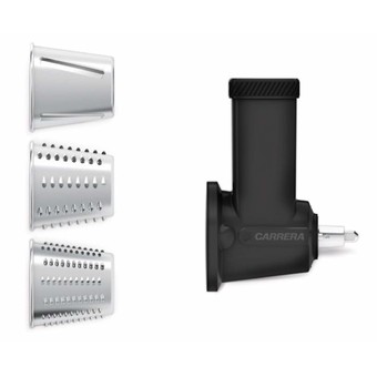 3 schnell auswechselbare Einsatztrommeln für feines Reiben und grobes Raspeln sowie zum Schneiden