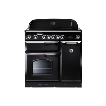 #8 {main} Der Falcon Kitchener 90 ist ein schwarzes Kochzentrum mit Chrom Applikationen is